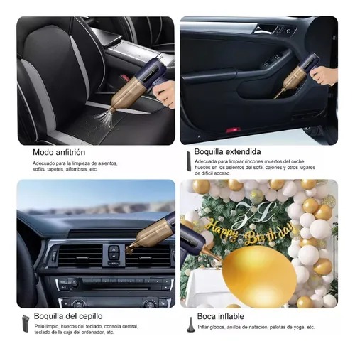 Esta aspiradora/sopladora de mano inalámbrica es un dispositivo versátil todo en uno con siete modos de limpieza y diversos accesorios. Equipada con un potente motor de cobre puro de 200 W y aspas de ventilador de aleación, garantiza una limpieza profunda. No solo aspira, sino que también funciona como bomba de aire, aspiradora y soplador. Ideal para diversos entornos, como coches, hogares, zonas de mascotas, viajes, oficinas y mucho más.