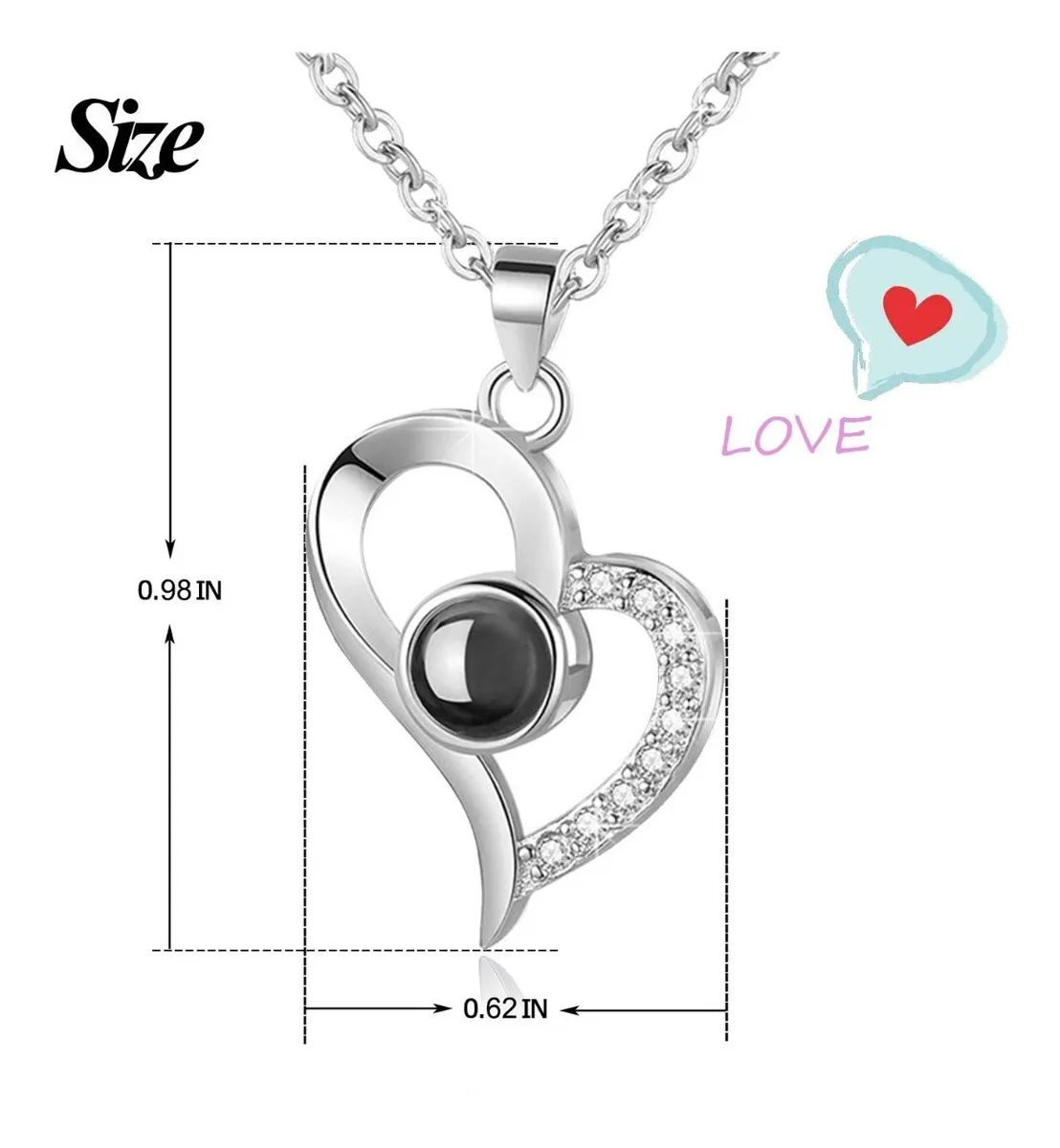 Diseño Asimétrico Moderno: Un dije de corazón con incrustaciones de strass, elegante y atemporal, perfecto para cualquier ocasión.