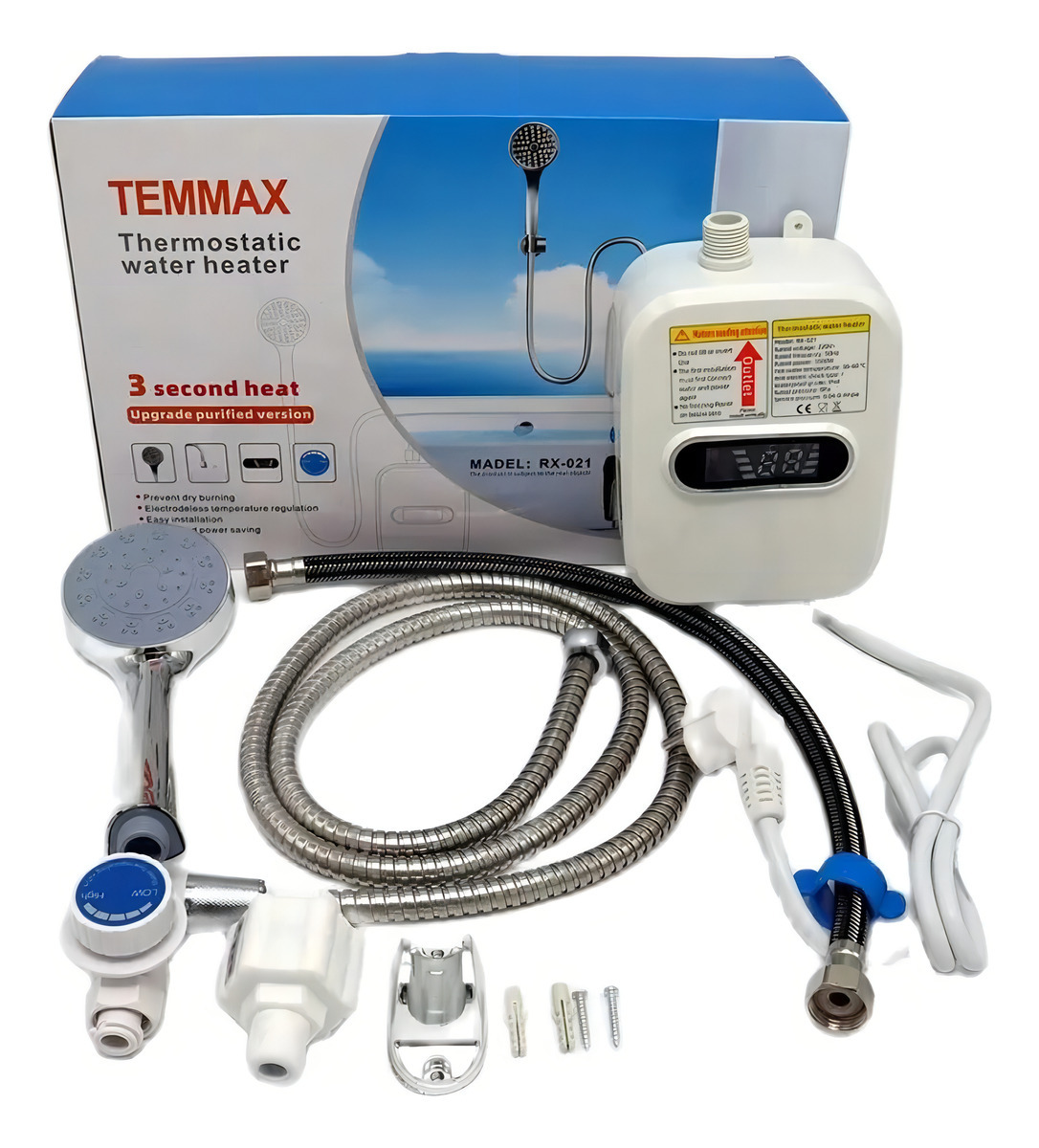 Calienta agua en tu hogar de una manera simple y rápida, para disfrutar de un buen baño o utilizarla para la limpieza e higiene de tu cocina. Agua caliente siempre El calefont eléctrico te permite calentar agua instantáneamente al momento de encenderlo. Con una potencia de 3 kW, este calentador de agua instantáneo es eficiente y práctico, proporcionando un flujo de 5 litros por minuto. Su diseño compacto en color blanco facilita su instalación en espacios reducidos, adaptándose a cualquier rincón de tu hogar. Además, cuenta con un control manual que te permite ajustar la temperatura según tus necesidades. Su tipo de tiraje natural asegura un funcionamiento seguro y confiable. Este calefont es la solución ideal para quienes buscan comodidad y eficiencia en el suministro de agua caliente