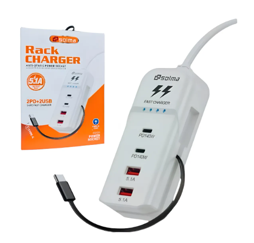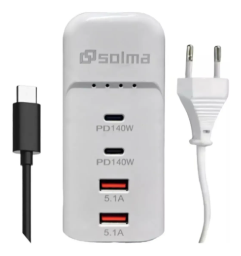 Este cargador no solo es funcional, sino también estéticamente agradable, diseñado para complementar cualquier entorno con su acabado moderno y minimalista. Ya no tendrás que preocuparte por llevar múltiples cargadores o adaptadores; con el cargador tipo regleta de 140W, tendrás todo lo que necesitas en un solo dispositivo.