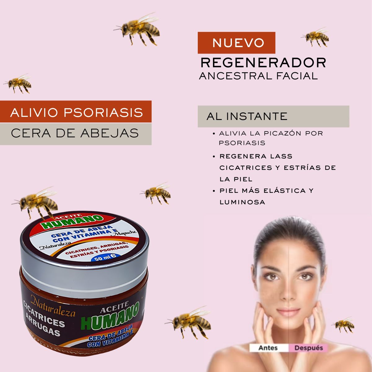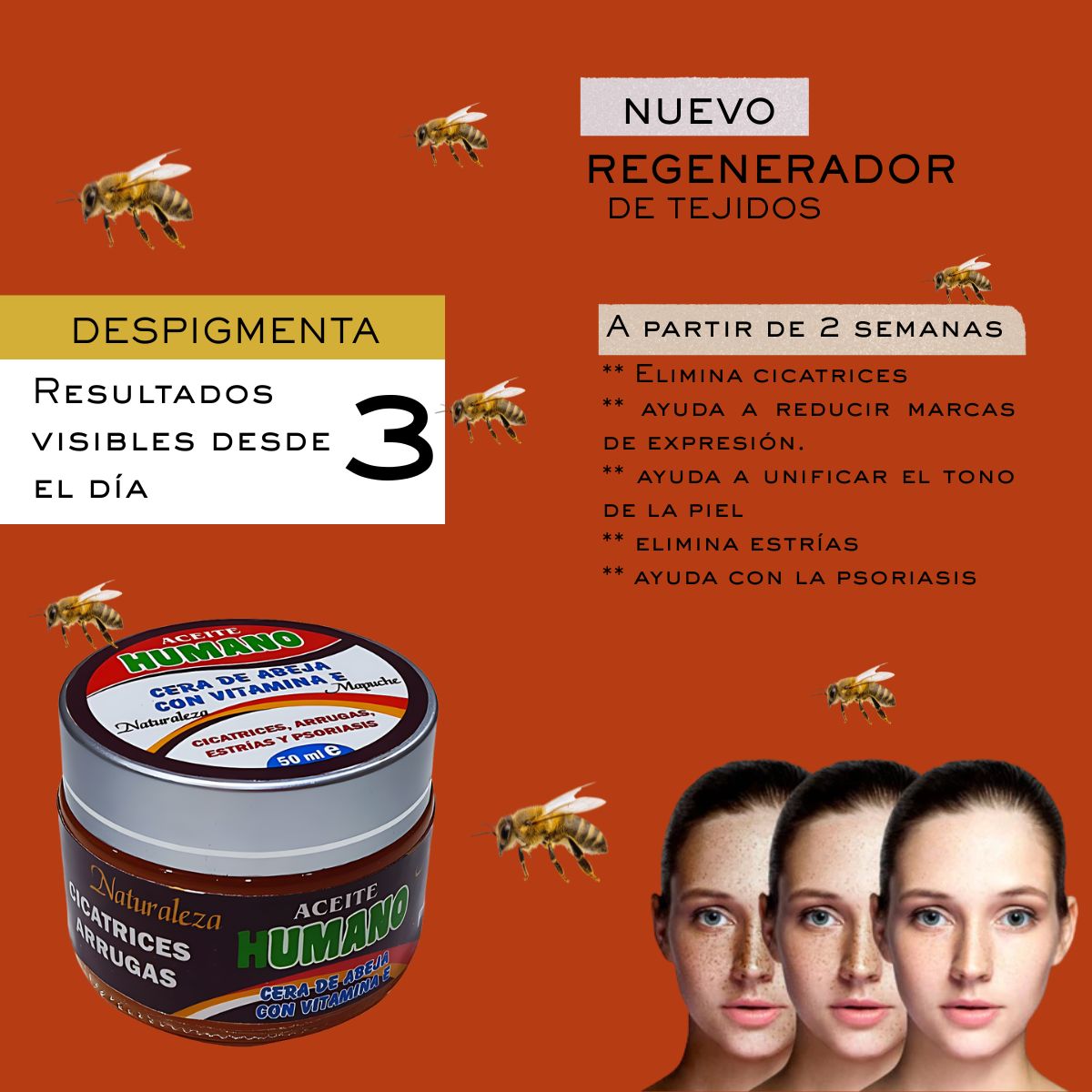 Este ungüento especializado combina la sabiduría ancestral con el poder de la Vitamina E. Su fórmula única imita la barrera lipídica natural, permitiendo una regeneración profunda en zonas con marcas, estrías o cicatrices.