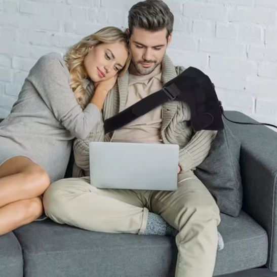 Dispositivo terapéutico diseñado para aliviar dolores y tensiones en el hombro mediante terapia de calor inteligente. Ideal para personas que sufren molestias por esfuerzo físico, mala postura, trabajo prolongado frente al computador o lesiones musculares.