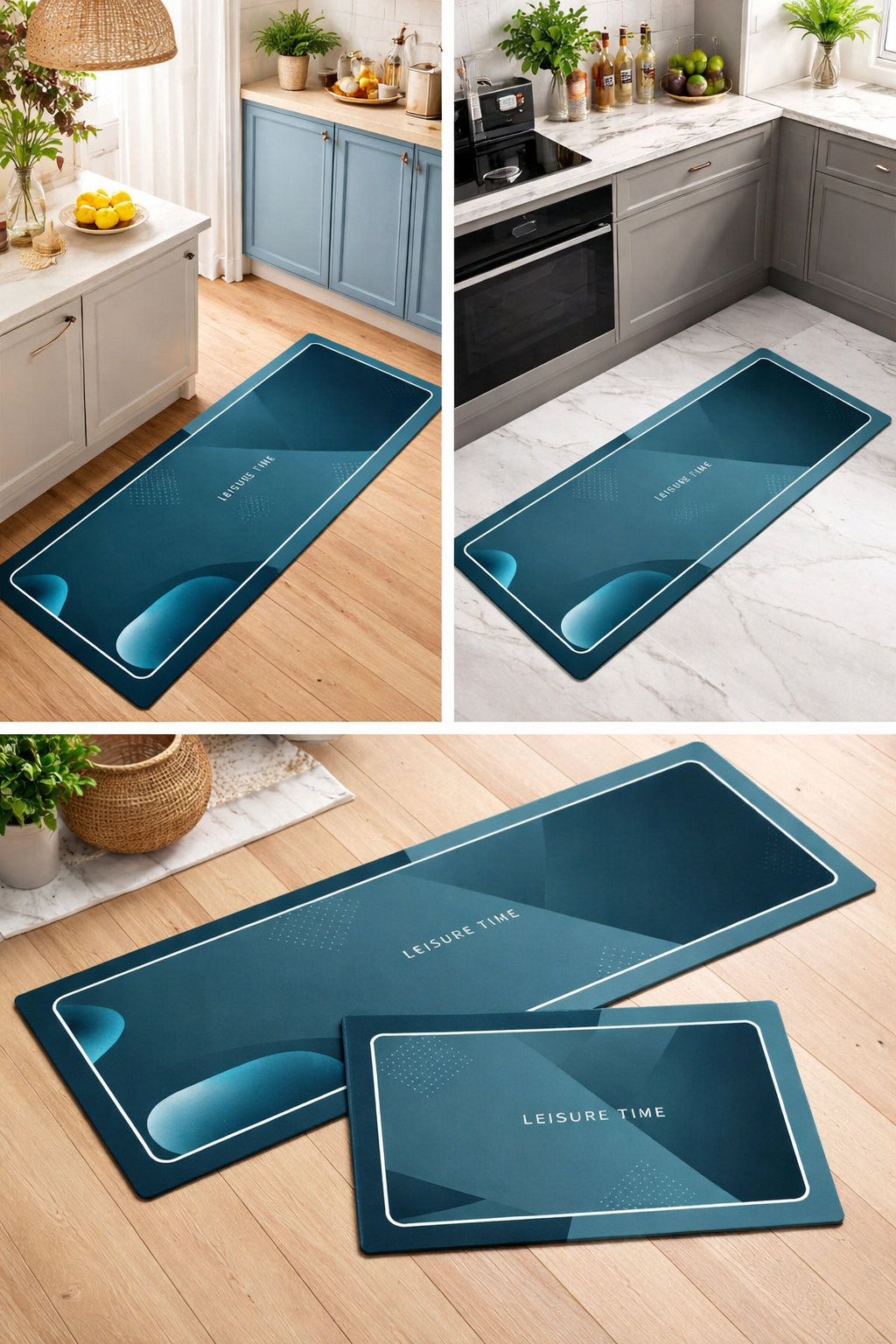 Diseño: Moderno y minimalista en color gris con la frase “COOKING TIME”. Incluye bordes contrastantes y suele venir en formato alargado (runner) y versión más corta.