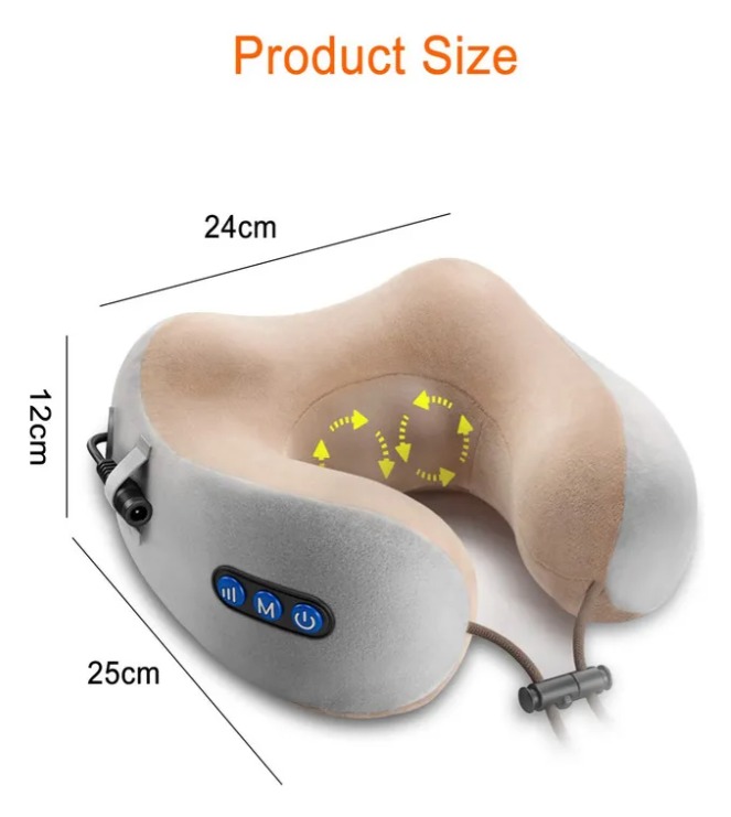 Cojín cervical ligero, con 02 funciones de masaje con vibración. Opción de temporizador de 10 minutos. Con cordel ajustable. Funciona con 2 pilas AA (no incluidas). masaje reconfortante con calor y alivia tensiones en un instante y en cualquier lugar gracias a este masajeador de cuello. Su diseño ergonómico en forma de U, su relleno de memory foam, su soporte dimensional 360 y su cubierta extra suave se adaptan perfectamente al cuello. Podrás además ajustarlo fácilmente hasta lograr la mejor comodidad con el tensor quick release, el cual podrás también usar para amarrar el masajeador a tu maleta o mochila mientras viajas. Este masajeador cuenta con la capacidad de entregar calor infrarrojo, por lo que obtendrás un masaje cálido, especial para aliviar las tensiones, dolores musculares, estrés y promover la circulación sanguínea. Cuenta con cabezales que irán moviéndose de diferentes formas con la presión exacta para lograr el masaje perfecto y entregandote pulsos en los puntos claves. Podrás ajustar el modo de uso logrando diferentes tipos de masaje con un solo botón, y ajustar los niveles de intensidad, ideal para obtener el masaje que más se ajusta a tus necesidades. Su liviano peso te permitirá llevarlo y usarlo en donde quieras, y debido a que no emite ruido, puedes usarlo desde trabajando en la oficina hasta viendo tus series favoritas sin molestar alrededor.