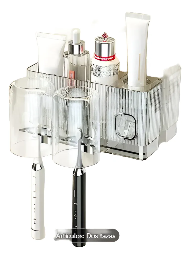 Incluye porta cepillos con protección, lo que ayuda a mantenerlos limpios y secos. Fabricado en material resistente y fácil de limpiar, perfecto para uso diario.