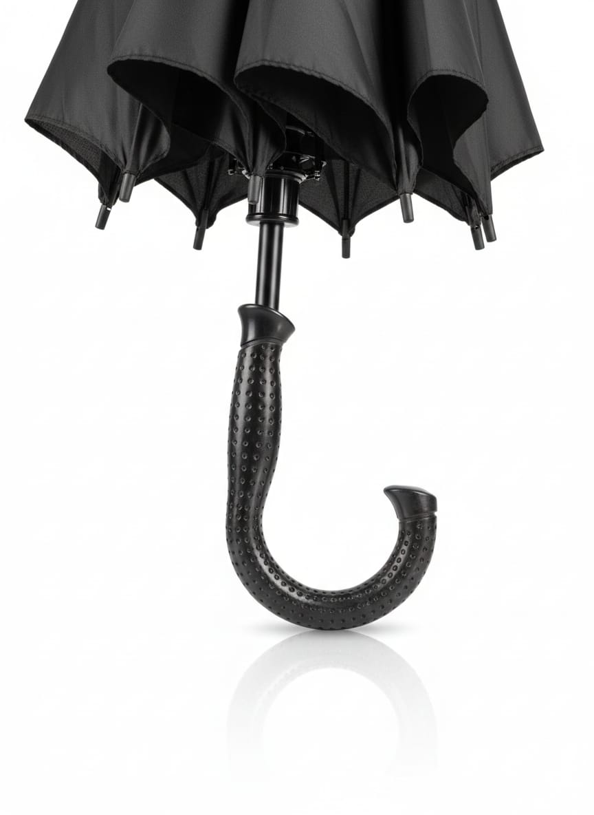 Paragua Negro Con Mango Curvo