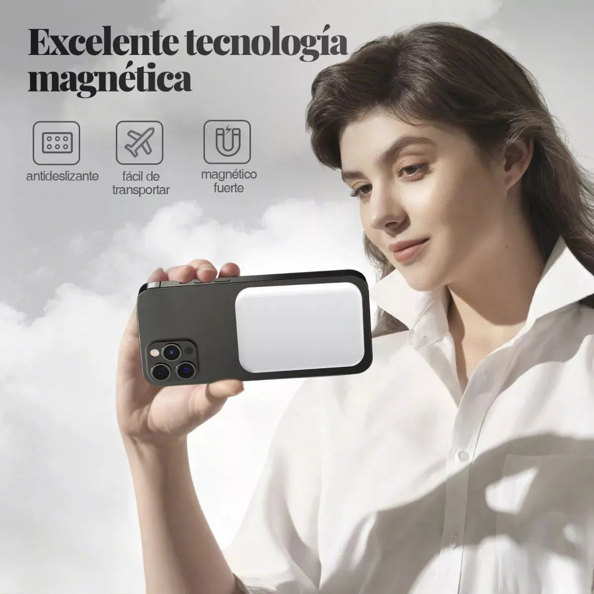 • 🧲 Sistema magnético (MagSafe): se adhiere directamente al celular