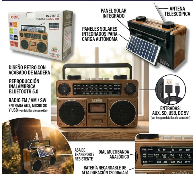 La radio recargable Fepe FP-2382 es la compañera ideal para quienes buscan disfrutar de su música y programas favoritos en cualquier lugar. Con su diseño portátil y ligero, este dispositivo de 300 g es fácil de llevar a la playa, camping o simplemente en casa. Su alimentación de 5V permite una carga sencilla y eficiente, asegurando que siempre esté listo para usar. Este modelo ofrece una experiencia de audio versátil, soportando formatos AM, FM, Bluetooth, MP3, USB y TF. La sintonización analógica garantiza una conexión clara y estable a tus estaciones preferidas, mientras que la conectividad Bluetooth permite reproducir música directamente desde tu dispositivo móvil. Con dimensiones de 23 cm de ancho, 14 cm de alto y 8 cm de profundidad, el Fepe FP-2382 se adapta perfectamente a cualquier espacio. Aunque no es resistente al agua, su diseño robusto lo hace ideal para el uso diario. Además, cuenta con un puerto USB que facilita la carga de otros dispositivos, haciendo de esta radio una opción práctica y funcional. Disfruta de la libertad de escuchar música donde quieras con la calidad y el estilo que solo Fepe puede ofrecer.